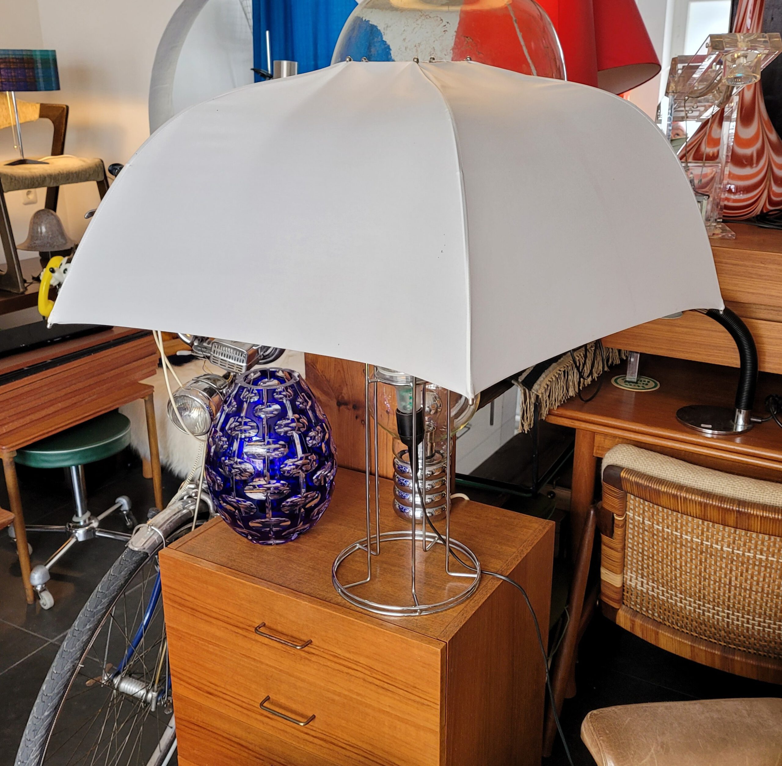 tischleuchte ‚umbrella‘ (gijs bakker) 1973 design gijs bakker for artimeta 1973, netherlands. mod. ‚umbrella‘. height ca. 73,5 cm, Ø 75 cm. preis: 550€ e-mail